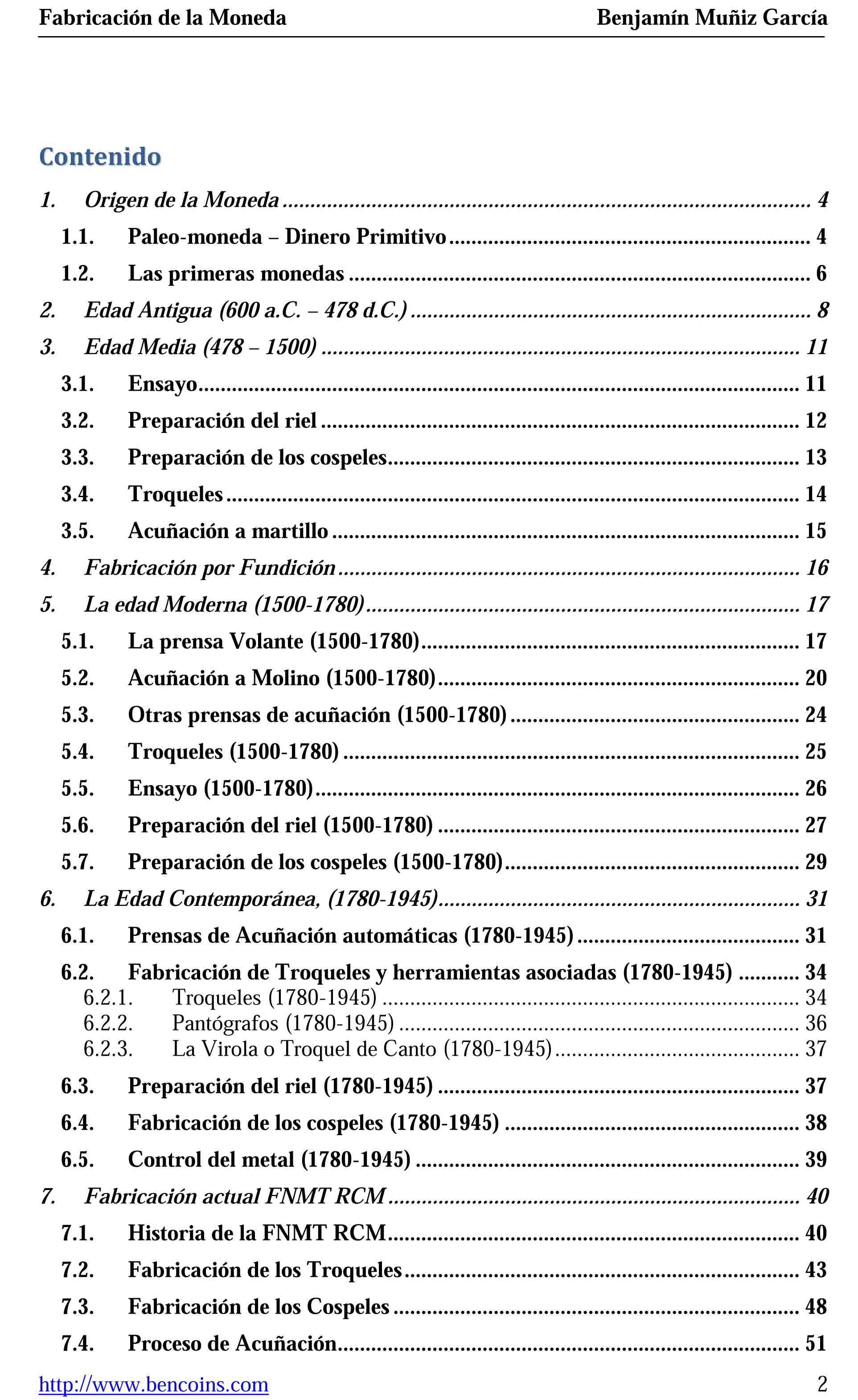 El capítulo 1, Origen de la Moneda, se subdivide en 1.1. Paleo-moneda – Dinero Primitivo y 1.2. Las primeras monedas