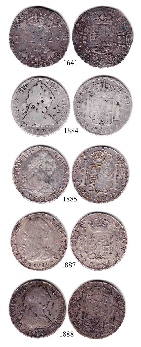 Monedas 8 Reales Columnario Plata Ag Rusia Numismática Rublos XRF Oro Au 8 Escudos Fakes Euro €