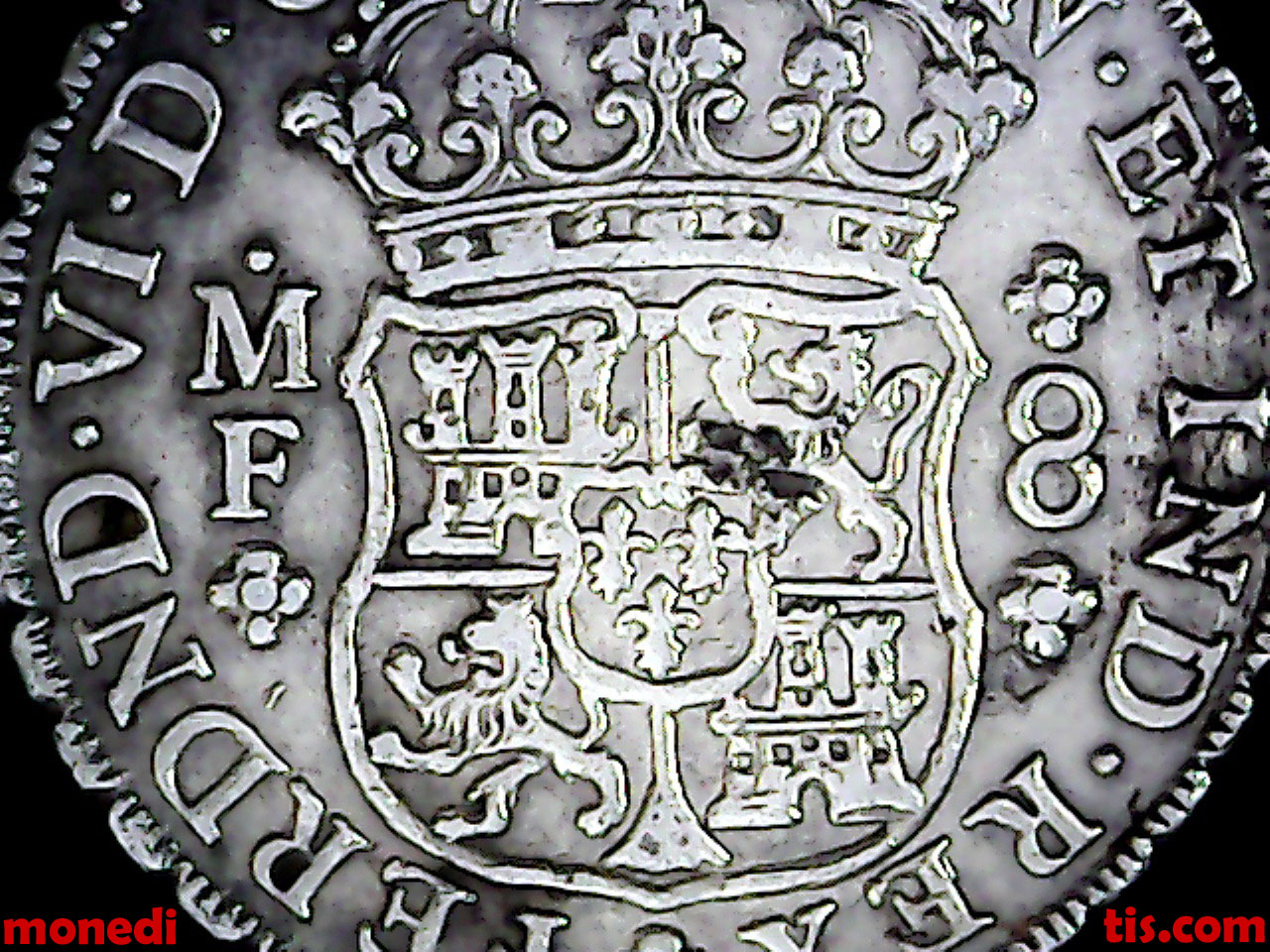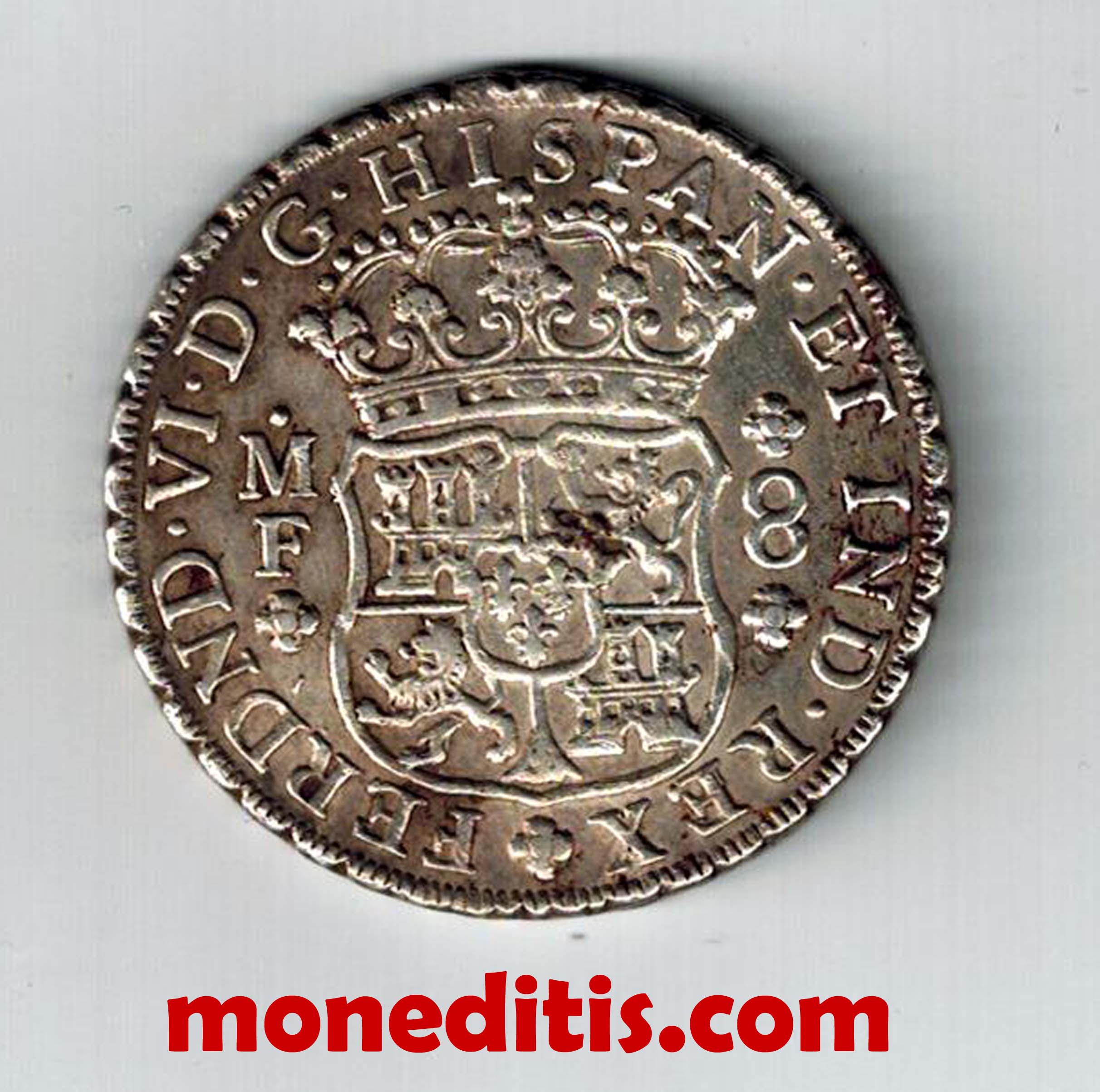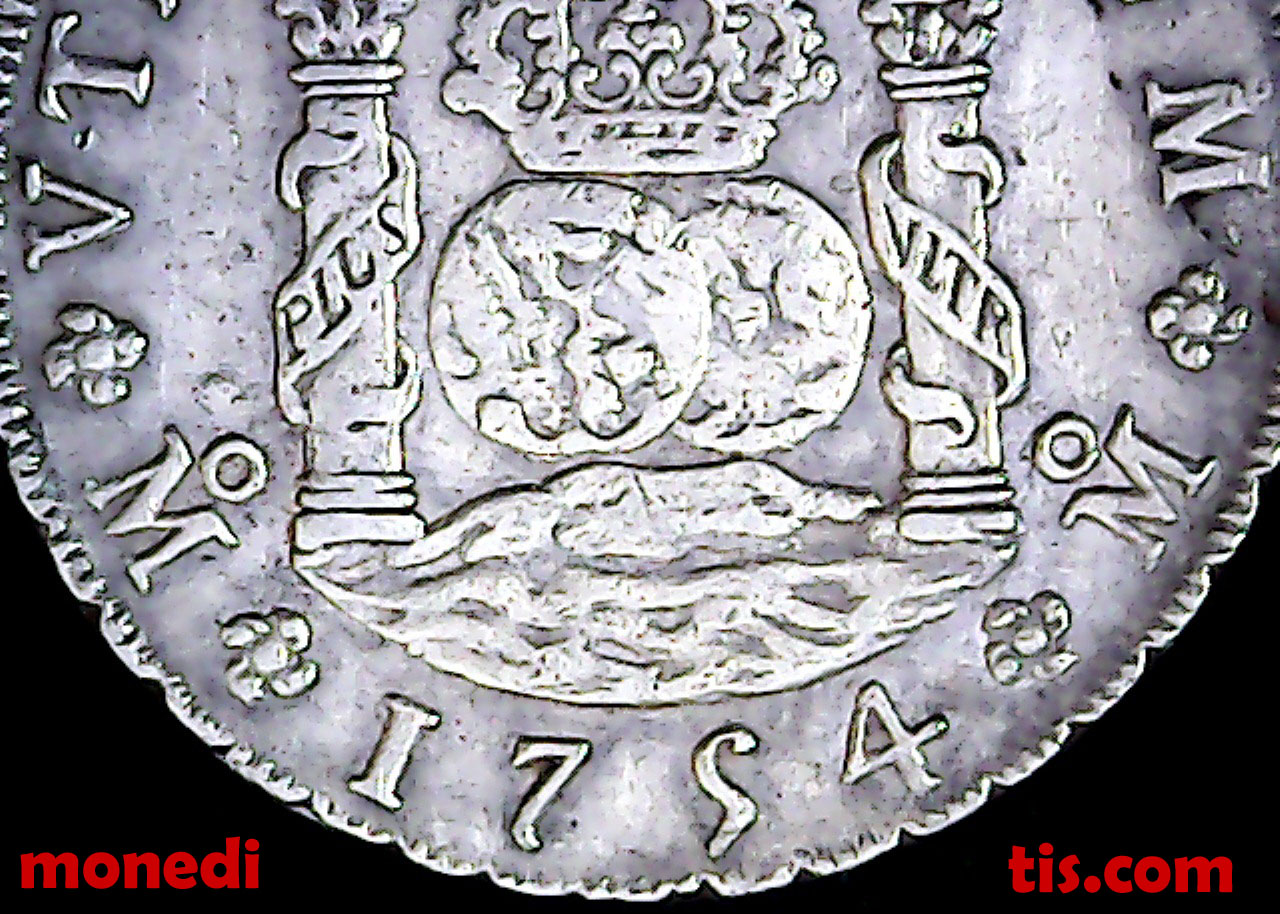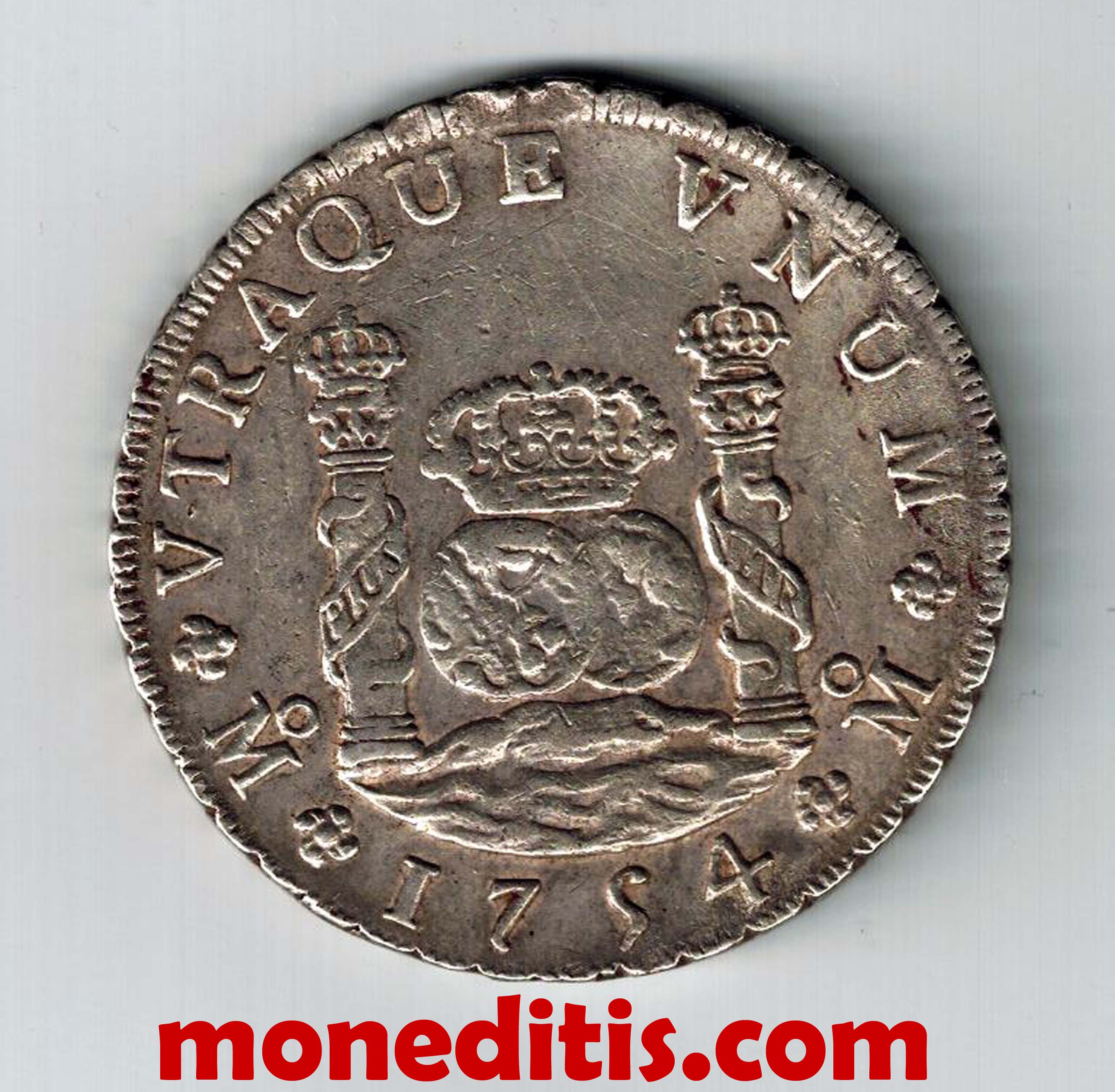 8 reales columnario 1754 dos coronas reales MF (ensayadores) AUTÉNTICA
