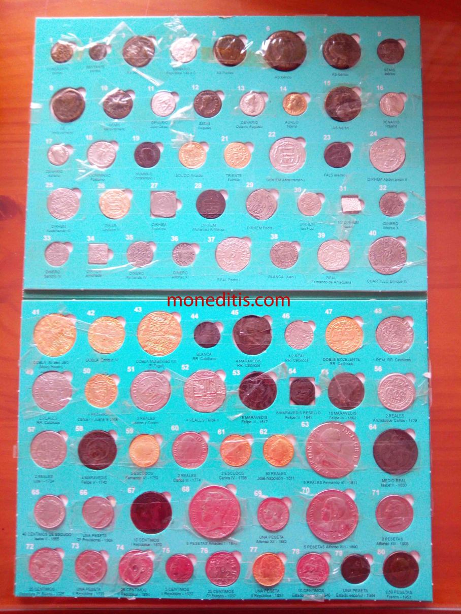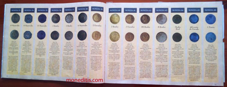 Esta colección empieza con un cuadrante púnico y termina con 2,5 pesetas de 1953 (monedas). Los billetes, evidentemente, comienzan en 1868. Recuerdo que hice esta colección, comprando el periódico todos los domingos durante más de un año, por las moneditas, claro está…aunque lo de las reproducciones nunca me ha gustado, de ahí que también me lanzara con la colección de fascículos «puros y duros» de PlanetaAgostini (un clásico) a la venta cada miércoles en el kiosco