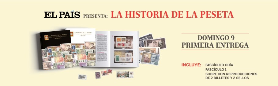 Ayer domingo 9 de septiembre apareció en los kioskos de toda España la colección «La historia de la peseta a través de sus billetes y sellos» al comprar el periódico El País, en su edición dominical + 4,95 € a partir de la 2ª entrega (1ª gratuita); gancho, al fin y al cabo, para comprar el diario. https://elpais.com/cultura/2018/08/30/actualidad/1535636628_743964.html original en este caso al no incluir monedas, aunque tanto billetes como sellos son reproducciones