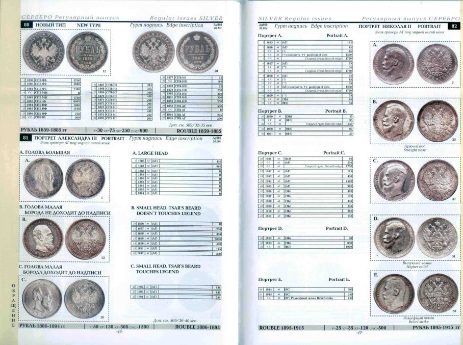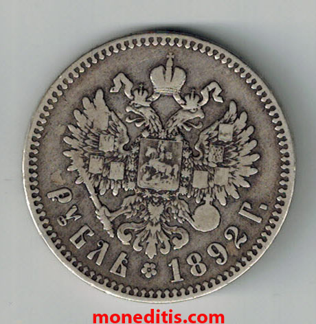 ¡Cuidado con este año! De 1892 hay rublo / moneda de los dos (2) tipos, B y C, o lo que es lo mismo, cabeza pequeña con barba «lejos» de la leyenda (B) y cabeza pequeña con barba casi tocando leyendas (C)