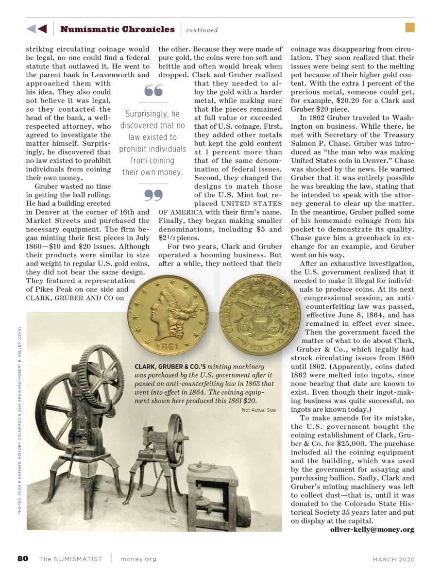 P.S. The Numismatist / March 2020. Clark, Gruber & CO.´S Nice Story!