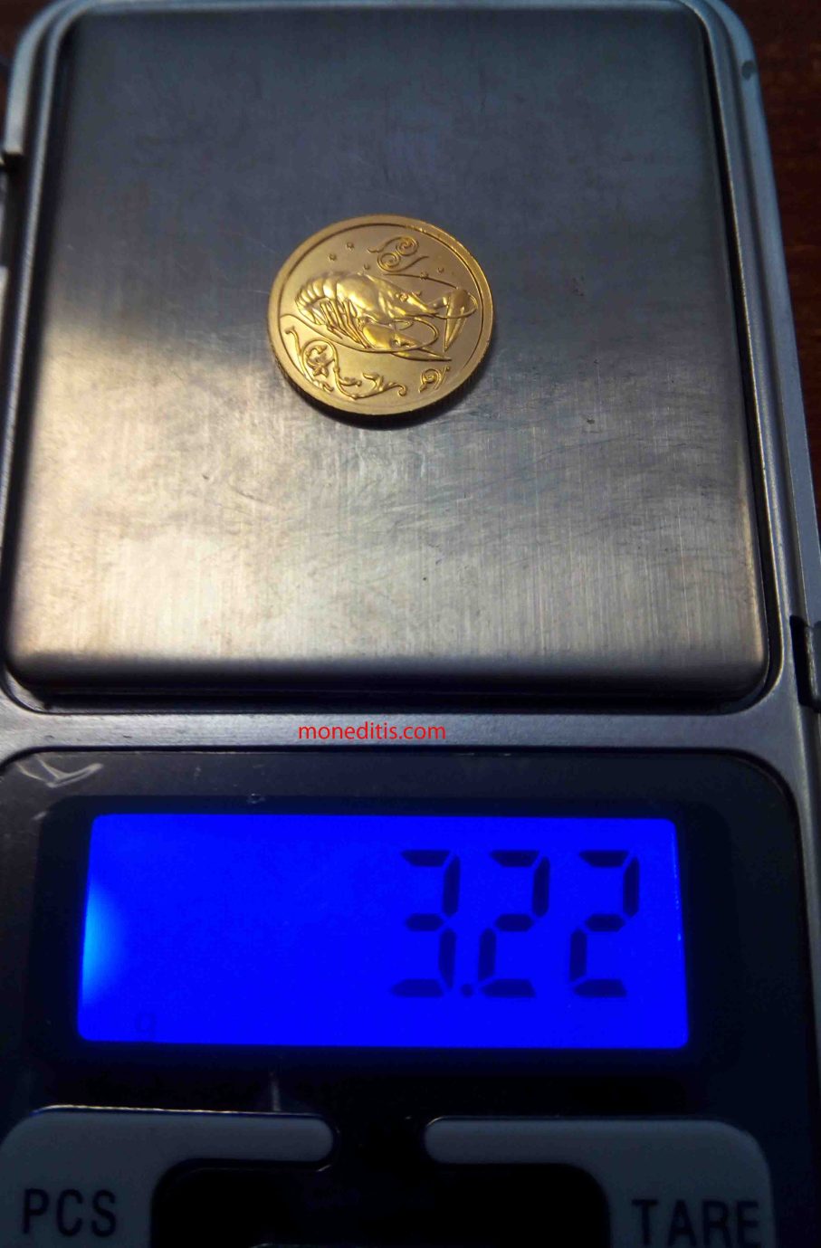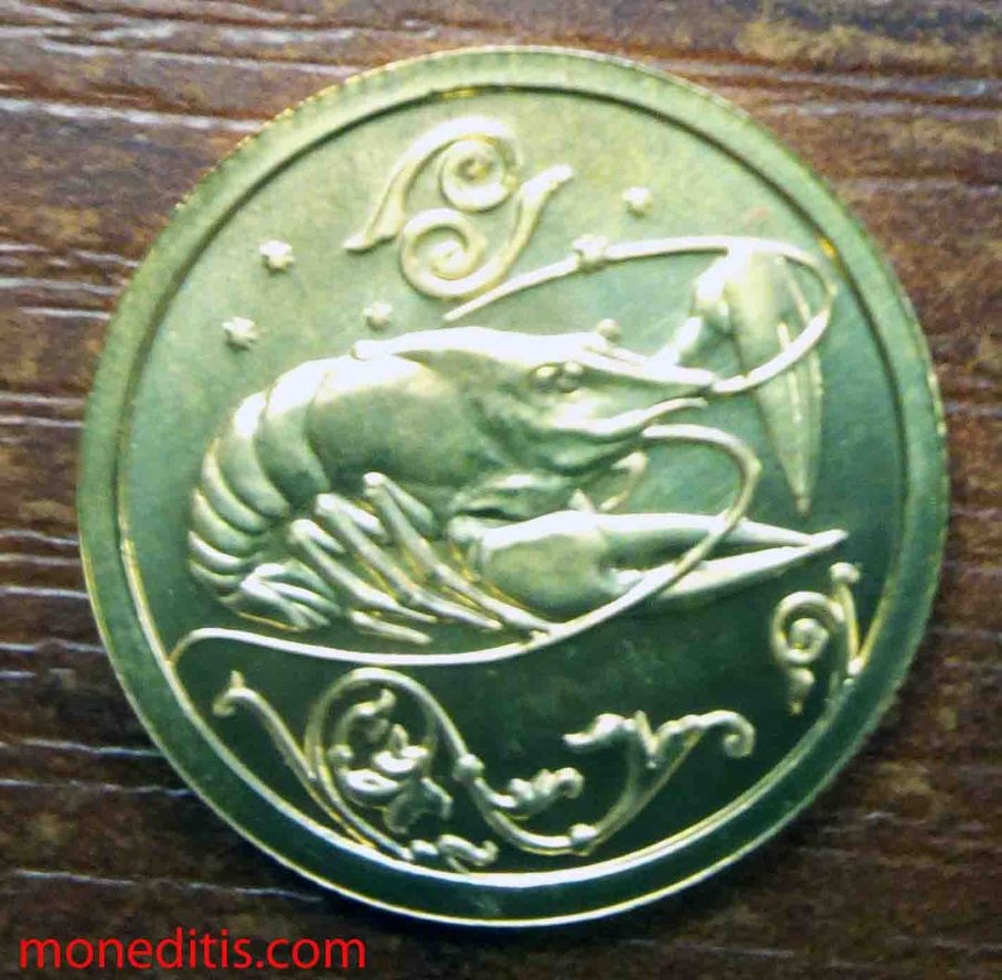 Sigo con Рак / Cáncer. Moneda de 25 rublos oro Au .999 de 2005 relativa al horóscopo.