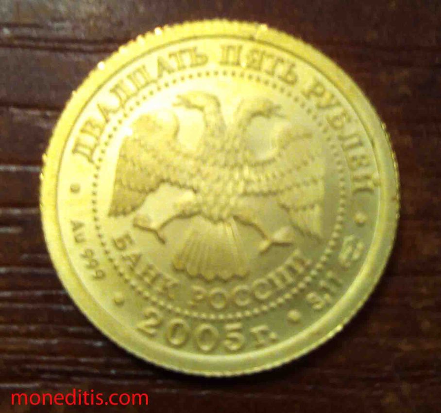 Peso teórico: 3,11 g oro Au .999 Diámetro 16 mm Tirada: 10.000 monedas. Ceca de San Petersburgo