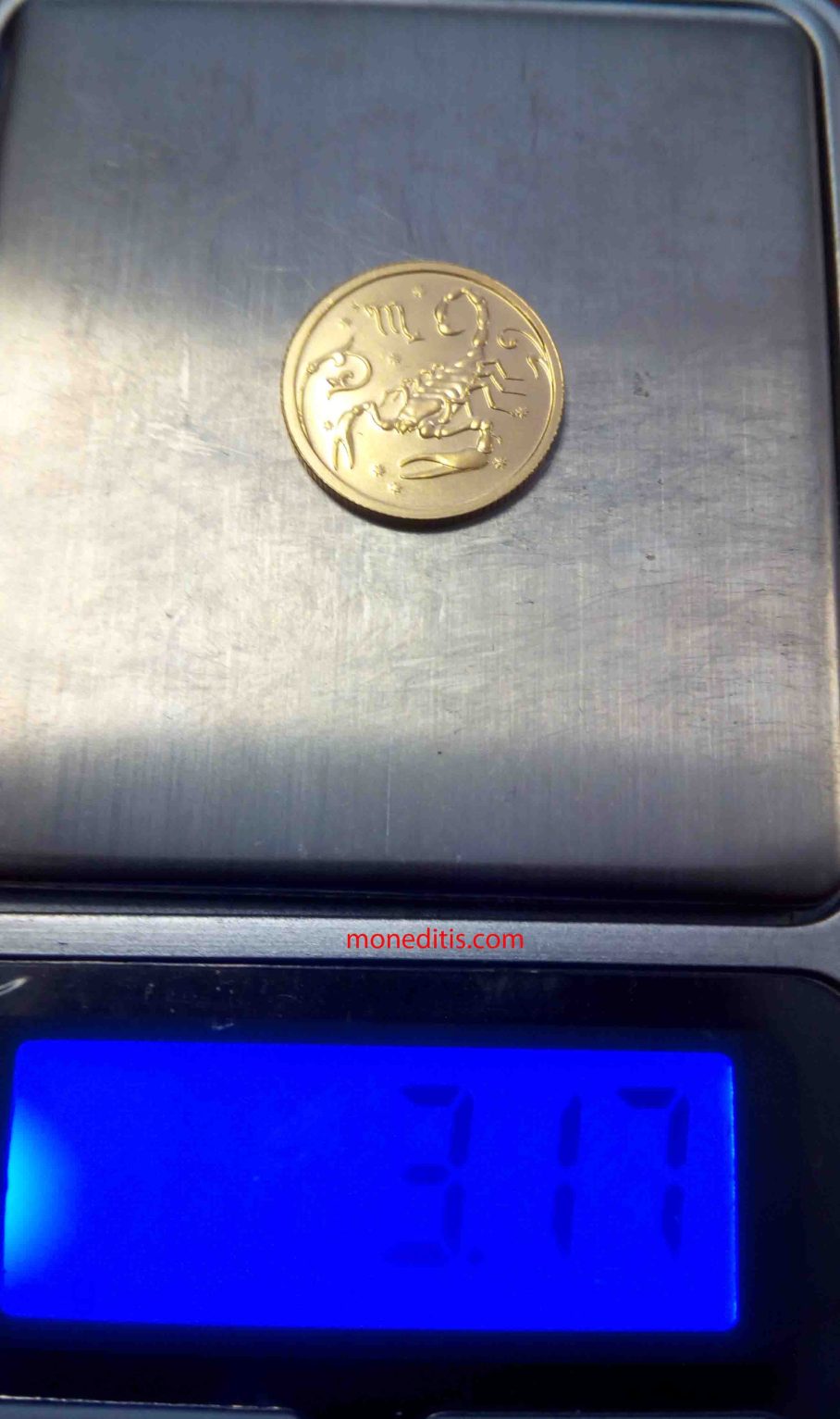 Sigo con Скорпион / Escorpio. Moneda de 25 rublos oro Au .999 de 2005 relativa al horóscopo y final de la serie de 12 horóscopos/monedas. Empezamos un 30 de noviembre de 2019 y acabamos un (1) año después este 22 de octubre de 2020, pandemia COVID-19 mediante