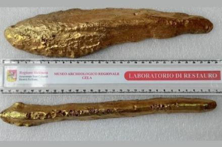 ¿Tenemos constancia de que el latón era conocido en la Antigüedad? Recientemente un descubrimiento ha venido a confirmar este punto sin ningún género de dudas. En enero de 2015, en las costas del sur de Sicilia, en el mar de Gela, se encontró un pecio, datado hacia la primera mitad del siglo VI, que se hundió con un cargamento de metales de la época. El pecio transportaba 39 lingotes de metal, cuya composición resultó ser de entre un 75-80% de cobre, un 15-20% de cinc, y el resto de hierro, níquel, y plomo. Semejante aleación hoy día sería calificada como latón, pero, ¿era este material al que se refería Platón como oricalco? Hay margen para la duda, sobre todo si se tiene en cuenta que algunos escritores grecolatinos mencionaron en sus escritos tanto al oricalco como al latón dorado. Nunca dijeron que se tratasen del mismo material, pero tampoco que fueran distintos.