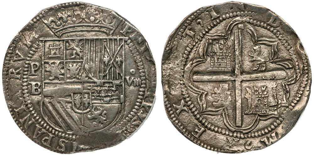 Felipe II (1556-1598). Silver 8 Reales (27.29 g), nd PB (1574-1586).