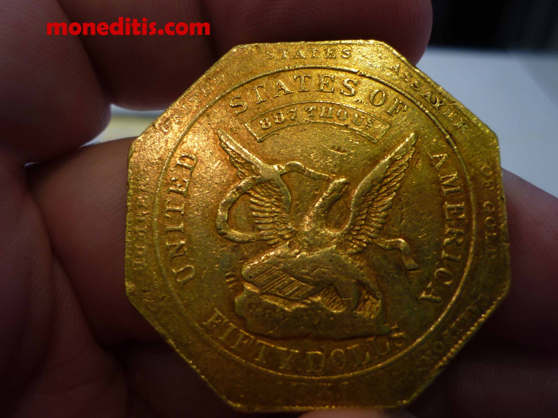 En la balanza hidrostática esta moneda marca una densidad compatible con oro de 18 K. Punto pelota.