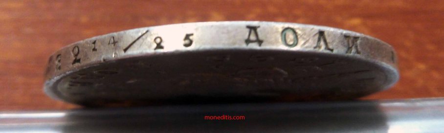 Peso teórico: 20,73 g Plata Ag ley .868 Tirada: 2.530.000 monedas Diámetro: 35,5 mm ceca: San Petersburgo СПБ