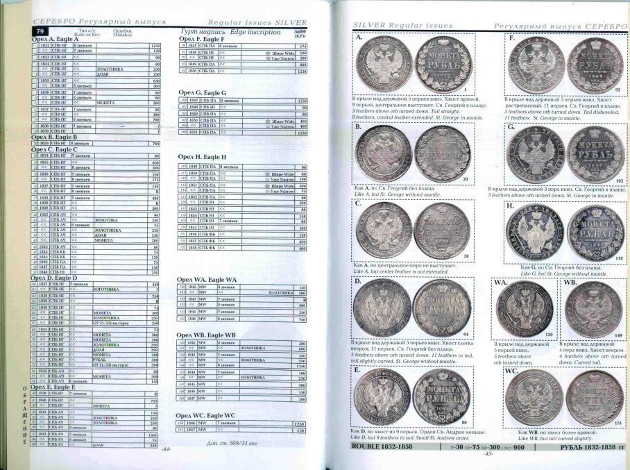 Hay dos tipos de águila según la longitud de las cintas en las patas (en 1830, el águila en los rublos aparece con cintas más largas).