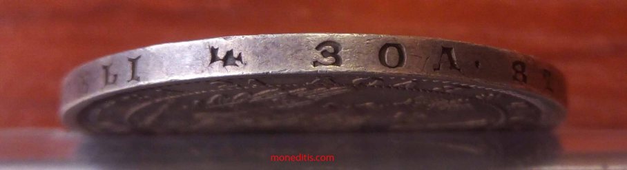 MS 62. Выдающийся коллекционный экземпляр. Яркий штемпельный глянец. Превосходный чёткий матовый рельеф. Исключительно редка. Достойна украсить фундаментальную коллекцию монет Российской Империи. История так называемого «рубля Трубецкого» не менее интересна и запутана, чем история самого «Константиновского рубля», послужившего ему прототипом. С экземпляра оригинального «Константиновского рубля» (попавшего в коллекцию генерала Т.Ф. Шуберта из коллекции Якоба Рейхеля, а затем после его смерти попавшего в коллекцию графов Толстых), вероятно, Т.Ф. Шубертом было сделано несколько гальвано-копий. С одной из этих гальвано-копий бывший в то время русским консулом в Марселе князь Александр Трубецкой (1813-1889) заказал в конце 1860-х годов штемпеля и сделал ими несколько экземпляров. Эти монеты были отчеканены на высоком техническом уровне. При безупречной передаче русского характера литер, они отличаются большей массивностью толстых прямых, а начертании некоторых букв и дуг имеют более плавный, чем на подлинной монете, изгиб. Эти монеты Трубецкой безуспешно пытался продать заинтересованным коллекционерам под видом оригинальных. Тем не менее вскоре по Санкт-Петербургу поползли слухи, что продаются подделки «Константиновского рубля», изготовленные князем Трубецким. Чтобы как-то восстановить свое имя, князь А.Трубецкой в Марселе в 1873 опубликовал брошюру, где он утверждал, что единственная известная на тот момент оригинальная монета из коллекции Шуберта – подделка, а как раз монеты, которые он предлагает и являются подлинными. Два экземпляра рубля Трубецкого, один серебряный и один медный, попавшие в одну серьезную французскую коллекцию, после открытия в 1879 году в секретном архиве Министерства Финансов подлинных монет Константина и последовавших разоблачений, получили позже гравированную надпись на гурте.