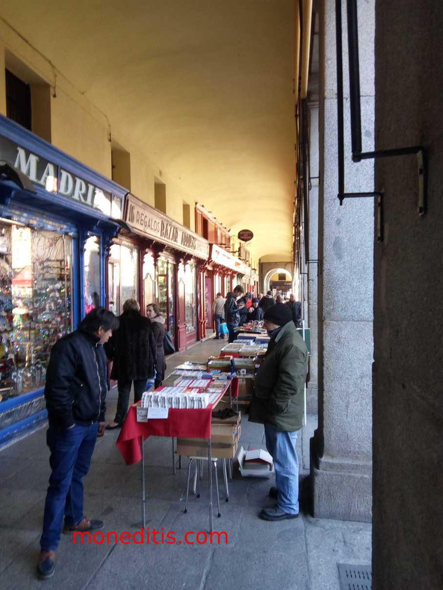 No es la primera, ni la última, vez que escribo sobre la Plaza Mayor de Madrid y su mercadillo numismático los domingos y festivos.    https://moneditis.com/2013/11/18/plaza-mayor-madrid/   y   https://moneditis.com/2014/03/09/rastro-plaza-mayor/   entre otras entradas, hacen referencia al tema.