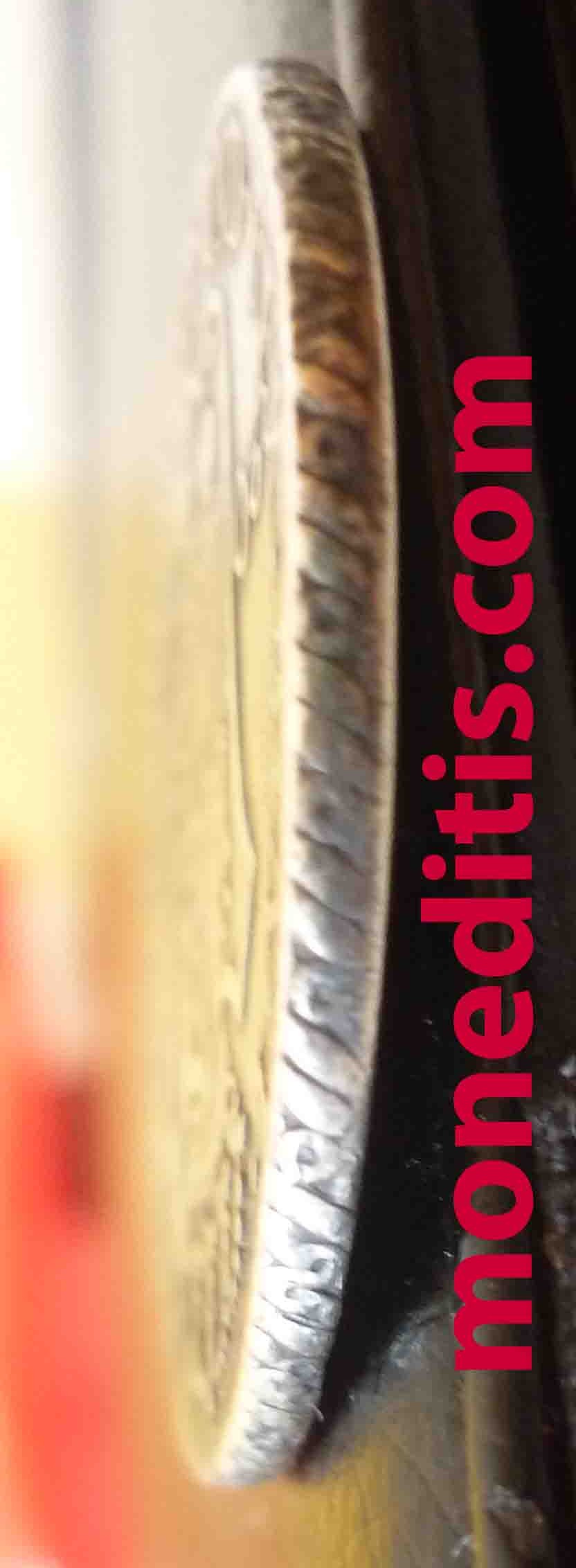 En el diseño del anverso, la corona principal tiene una elipse inferior completa («corona de estilo antiguo») 0 ( o nada) . Corona Real en la columna de la izquierda 0 ( o nada). Cruz de la corona principal situada entre «HI» y «SP» 0 ( o nada). Cospel de pequeño tamaño, 38 mm .sf (small flan).