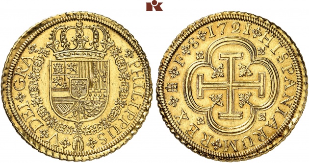 MONEDAS ESPAÑOLAS COLECCIÓN COLUMNARIA. Felipe V y Fernando VI/PILLAR MILLED COLLECTION Felipe V and Fernando VI Fernando VI. Nuevo Reino. 8 Reales. 1759. JV. Cy10640. Profunda hoja saltada en anverso. Mínima grieta en campo del reverso. Acuñación algo débil. MBC o algo mejor. Muy rara. Estimación 22.000 No vendida