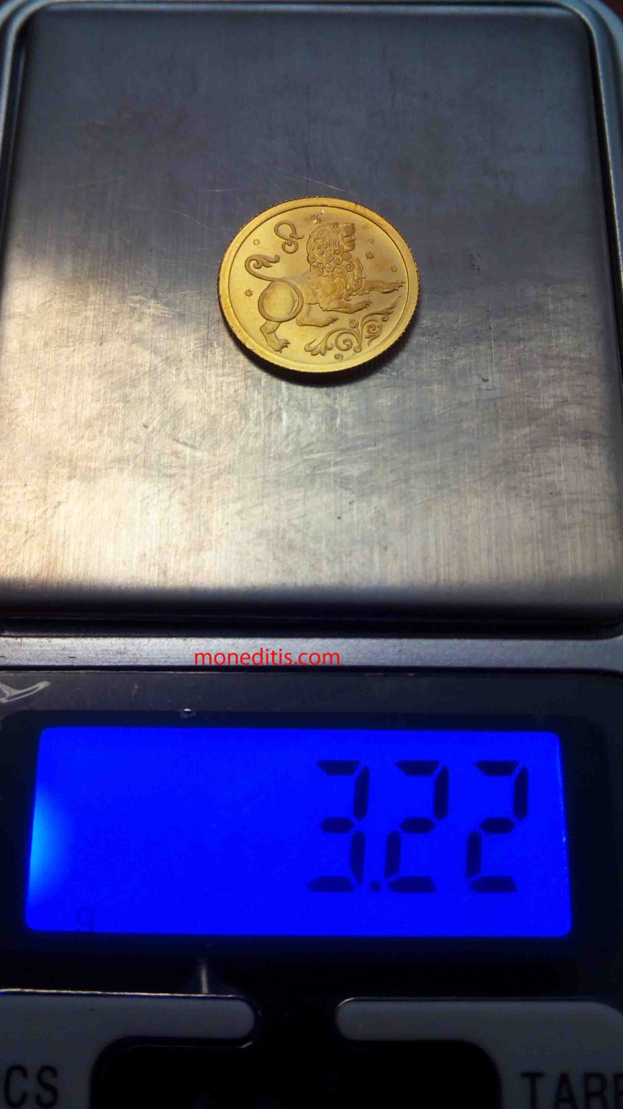 Peso teórico: 3,11 g oro Au .999 Diámetro 16 mm Tirada: 10.000 monedas. Ceca de San Petersburgo