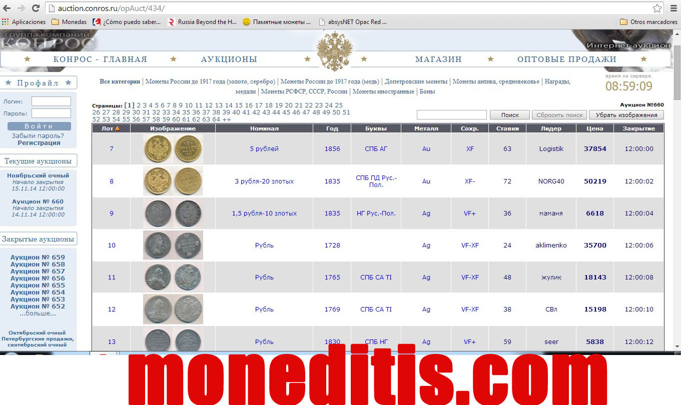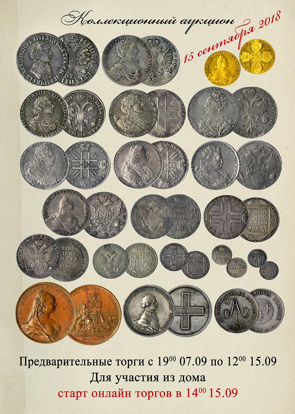 Sigue este otoño del 2018 con Очный аукцион сентябрь , The Most Expensive Russian Coin y Convención CKK Невские клады 2018 II