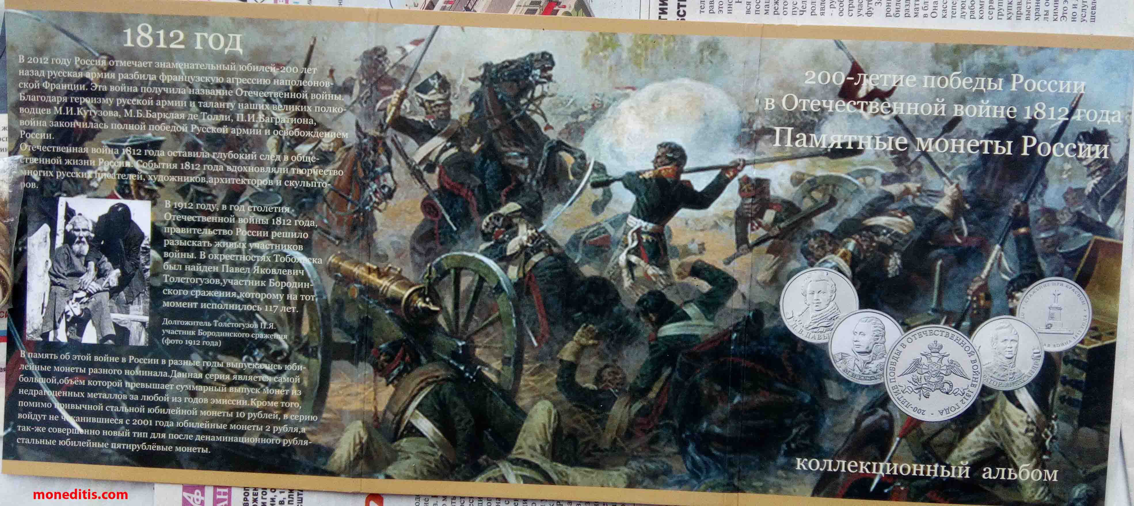 https://moneditis.com/2019/04/05/rublo-1839-borodino-%d1%80%d1%83%d0%b1%d0%bb%d1%8c-1839-h-gube-f/ Este rublo se acuñó en tiempos de Nicolas I, 1839, hijo de Alejandro I, y conmemora la construcción de una capilla en recuerdo a los caídos en la batalla en la batería Rayevsky, colina desde la que se divisaban a este y oeste las posiciones del primer, segundo y tercer cuerpo del ejército ruso.