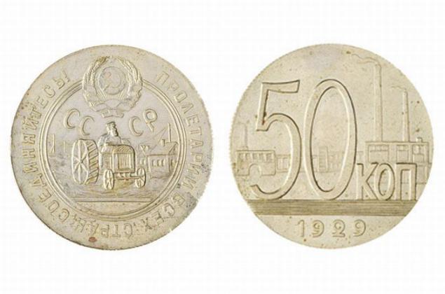 En los fondos de la ceca de Leningrado sobreviven los cuños de 10 y 50 kopeks, pero ni una sola muestra de las propias monedas. Sin embargo, hace unos años en una colección privada apareció un cincuenta kopeks, al parecer acuñado en 1929. En mayo de 2011, en la subasta «Znak» fue vendido por teléfono en 10 millones de rublos. Se trata de un precio récord para la moneda soviética durante los últimos años.