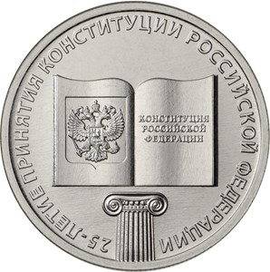 25 rublos cu-ni. 25 años de la Constitución de la Federación Rusa. Tirada: 1 millón.