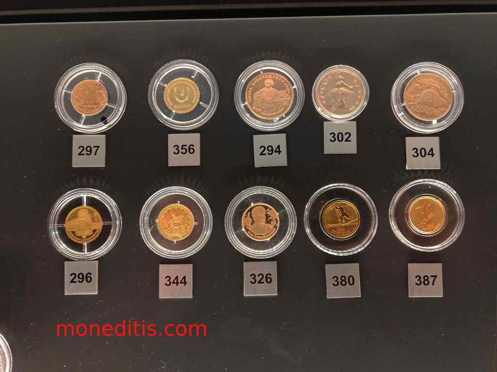 En los tablones informativos tenéis la traducción del ruso al inglés, por lo que con mirar el numerito de la moneda expuesta e ir a la descripción lo tenéis fácil. Es vuestra oportunidad de comparar el alfabeto latino con el cirílico