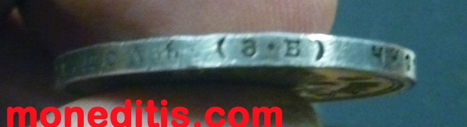 Reverso: «Б.М. НИКОЛАЙ II ИМПЕРАТОР», справа вдоль края монеты надпись «И САМОДЕРЖЕЦ ВСЕРОСС.»
