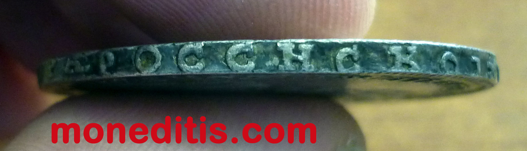 La inscripción en el canto es «Rublo Ruso de la corte de Moscú», aparentemente, esta designación de los productos de la corte de Kadashev en Moscú está relacionada con el esperado inicio del trabajo en la nueva casa de la moneda en San Petersburgo.  https://conros.ru/1/blog/115/