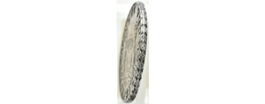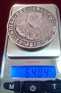 Pues bien, esta moneda demuestra que, al menos en pruebas, la nueva maquinaria de acuñación a volante ya funcionaba en 1699 y se usaba en las principales piezas de referencia. Los Reales de a Ocho de esta fecha que se conocían hasta ahora de la ceca de Sevilla eran todos realizados a martillo y con fecha corregida sobre 1698, lo que no ocurre en nuestro caso, como demuestran los análisis metalográficos realizados en el SiDI de la Universidad Autónoma de Madrid. De este año 1699 son las primeras Onzas sevillanas realizadas de forma mecánica, lo cual avala también la producción de los Reales de a Ocho por el mismo método, como es la pieza que presentamos.