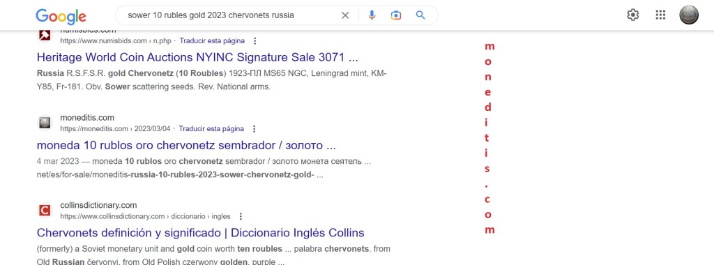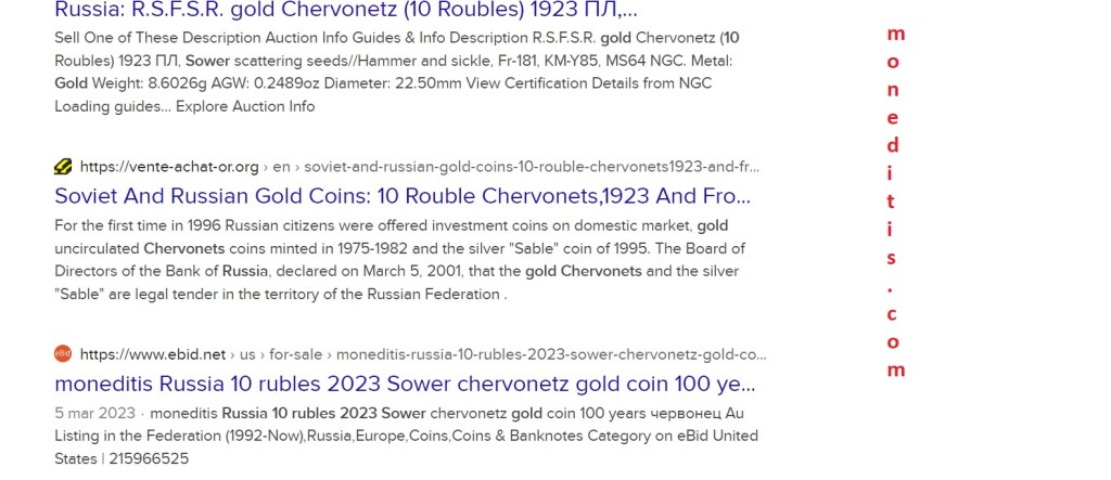 Con los 10 rublos conmemorativos de los 100 años 1923 – 2023 https://moneditis.com/2023/03/04/moneda-10-rublos-oro-chervonetz-sembrador-%d0%b7%d0%be%d0%bb%d0%be%d1%82o-%d0%bc%d0%be%d0%bd%d0%b5%d1%82a-%d1%81%d0%b5%d1%8f%d1%82%d0%b5%d0%bb%d1%8c-%d1%87%d0%b5%d1%80%d0%b2%d0%be%d0%bde%d1%86-2023/ he comprobado la no disponibilidad de esta moneda fuera de Rusia en la actualidad, por motivos evidentes