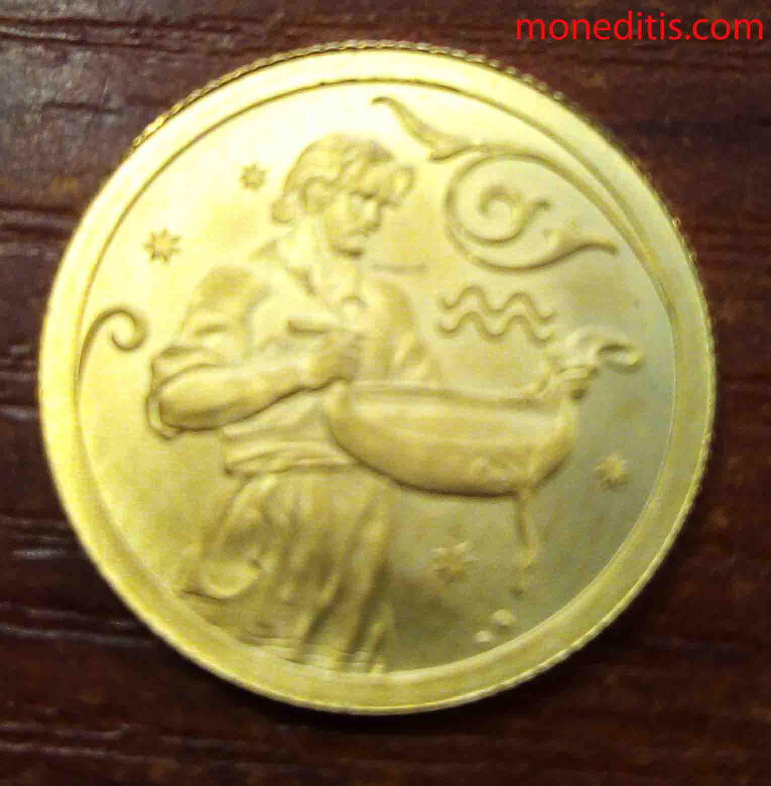 Sigo con Водолей / Acuario. Moneda de 25 rublos oro Au .999 de 2005 relativa al horóscopo.