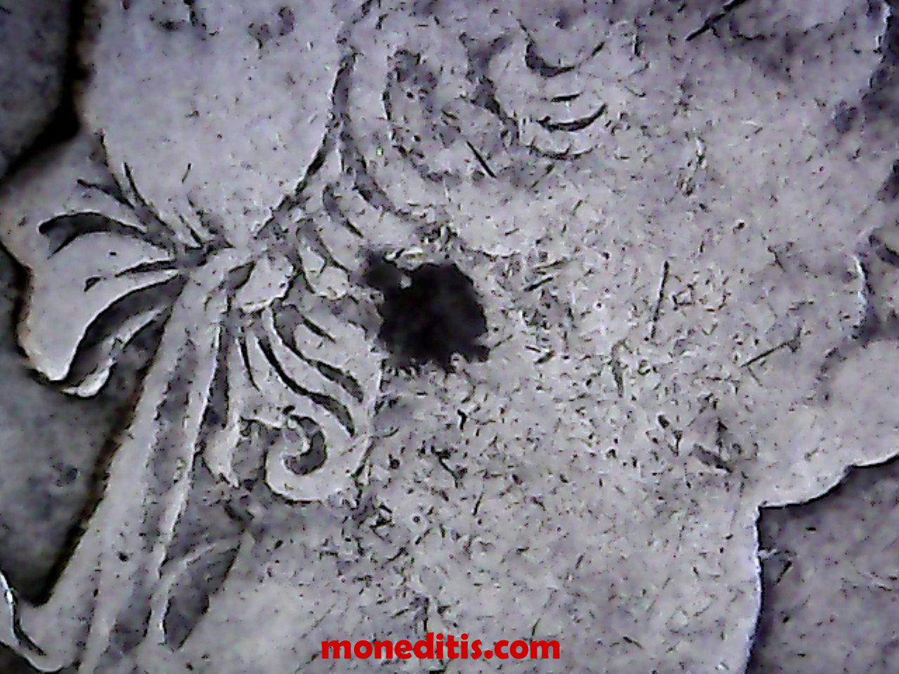 Ensayos XRF llevados a cabo en Espectrómetro científico Panalytical Axios. A grosso modo se busca Au a partir de 100 ppm. Su ausencia determina que el proceso metalúrgico de fundición no se corresponde con la época de acuñación por lo que puede colegirse la no autenticidad de la moneda. Microscopía electrónica no añadida, corroborando falsedad.