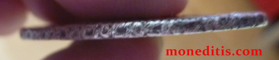 La moneda de la izquierda (número 1) tiene una pátina-suciedad con «pinta lejía» bastante curiosa.