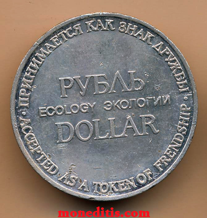Anverso: ПРИНИМАЕТСЯ КАК ЗНАК ДРУЖБЫ                                                                                          РУБЛЬ ECOLOGY ЭКОЛОГИИ DOLLAR
