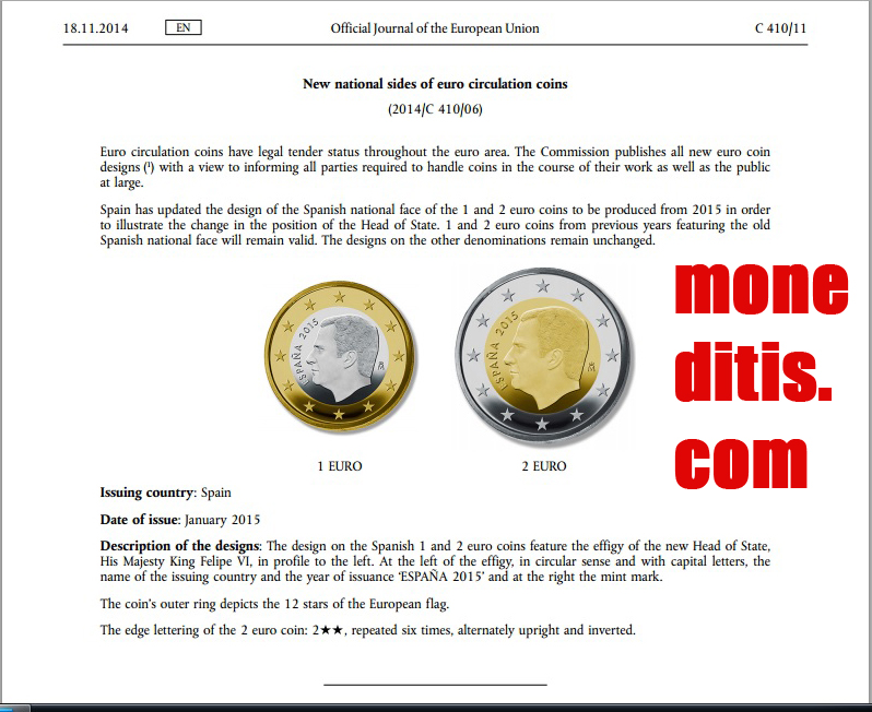 Etiquetado como 15 diciembre 2014, 2 euros, 30 euros, Felipe VI, FNMT