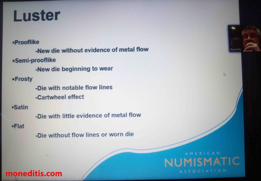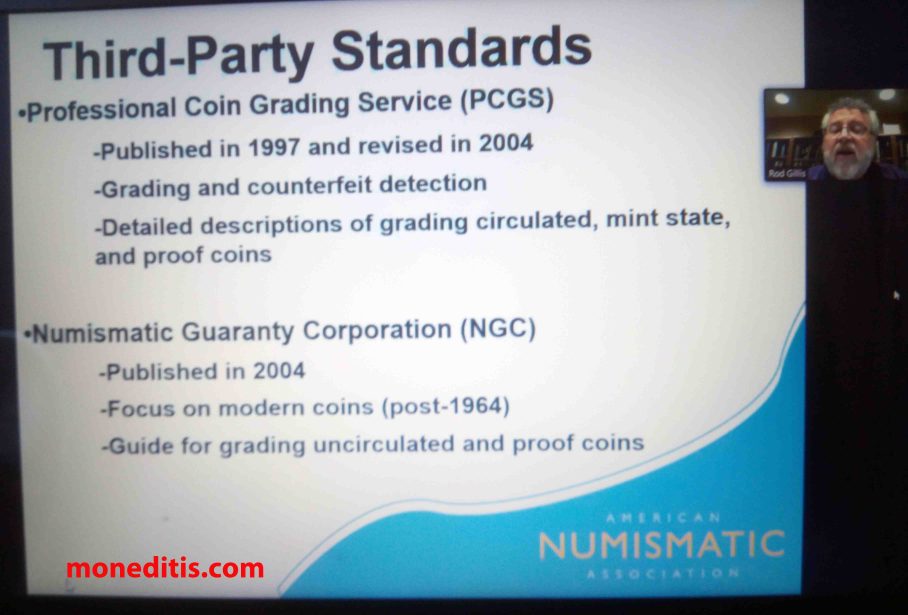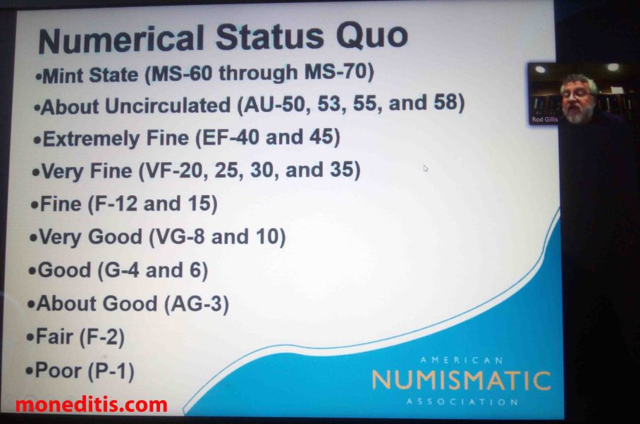 Desde las 19:00 h, hora española, hasta las 21:20 h, Mr. Rod Gillis nos ha instruído adecuadamente sobre la conservación y/o gradación de las monedas y todo lo relativo a ello