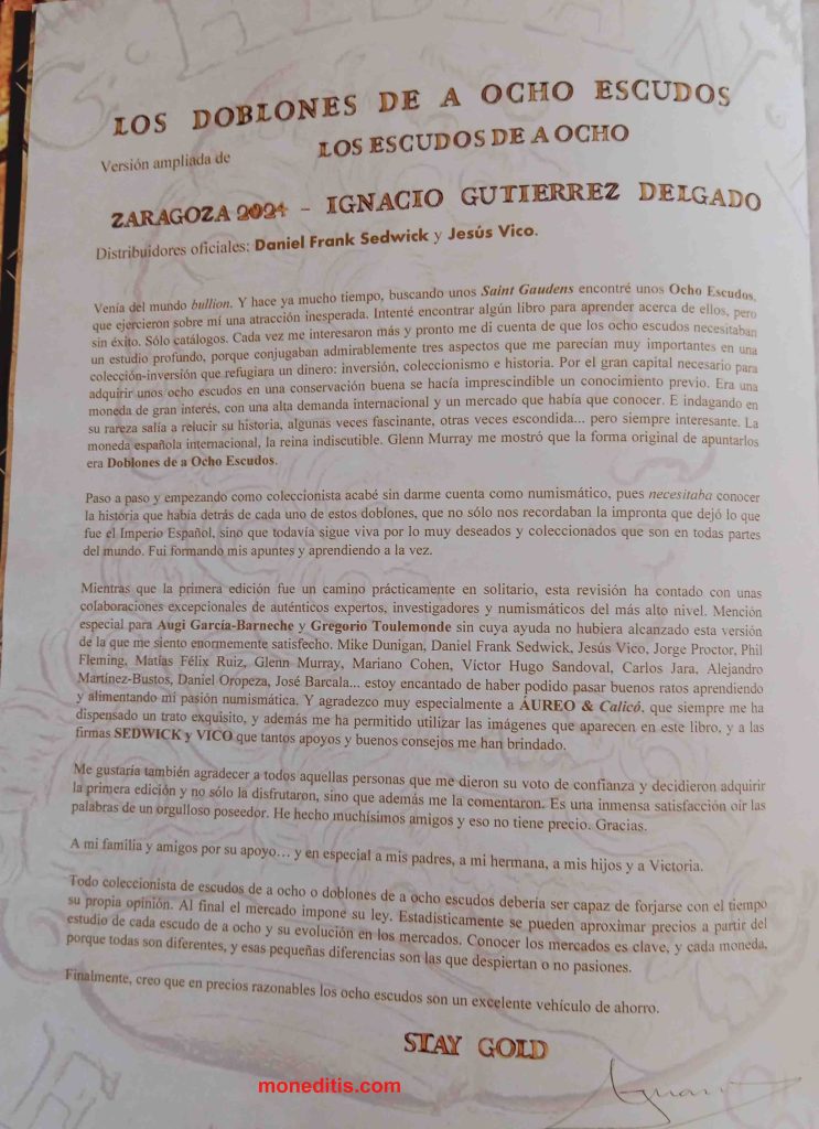 Termina este primer volumen de la bilogía con los capítulos referentes a Escudos Especiales y Doblones de a Ocho (8) Macuquinos