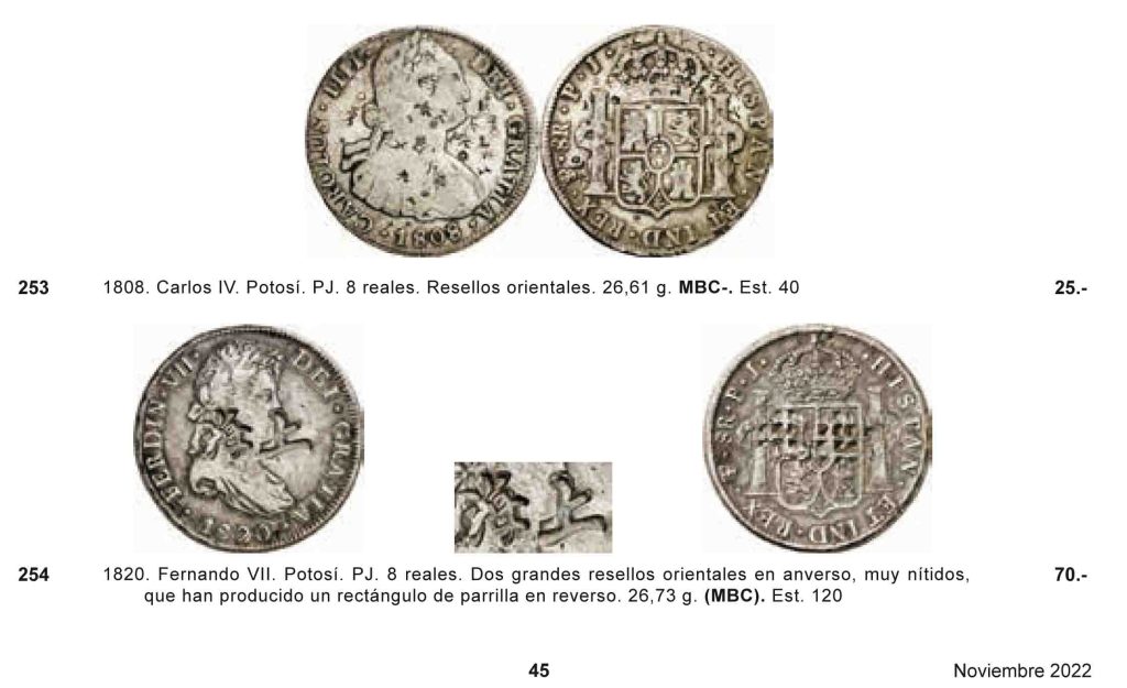 «…para 1732 no hubo suficiente capacidad de las prensas para acuñar la demanda de moneda, por lo que las macuquinas continuaron acuñándose a golpe de martillo, a la vez que las Columnarias en prensa, la anterior complicación solo se presentó en las acuñaciones argentíferas, el oro continuó acuñándose de forma redonda, con cordoncillo.