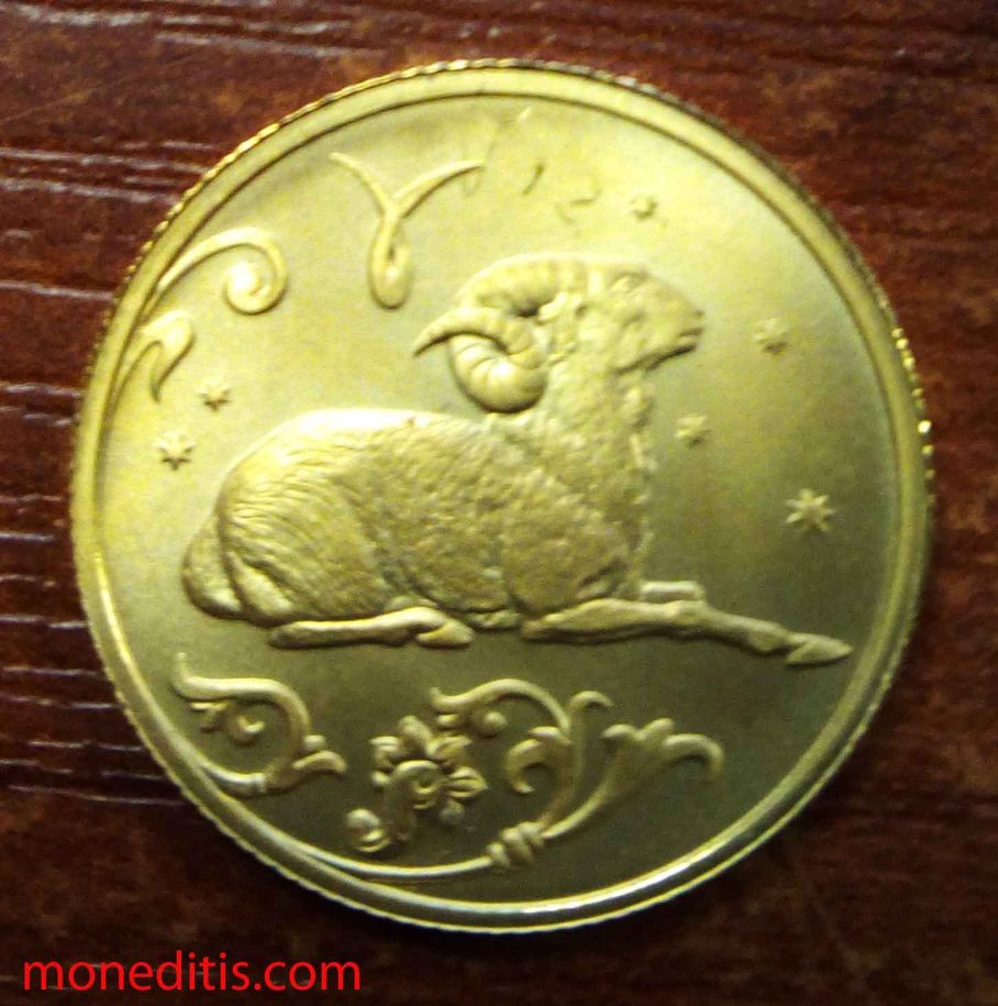 Sigo con Овен / Aries. Moneda de 25 rublos oro Au .999 de 2005 relativa al horóscopo.