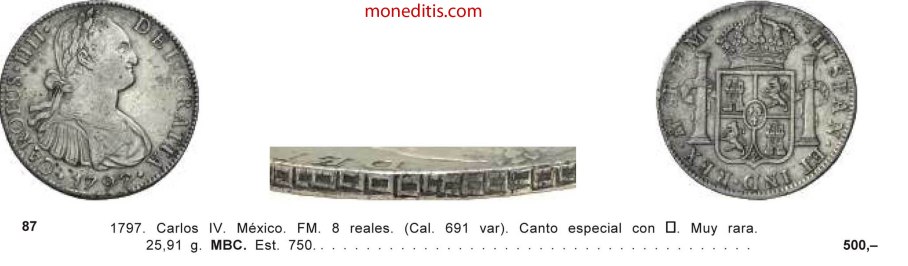 Me gustaría citar un ejemplo reciente de una prestigiosa casa española que subastó en julio la moneda de la foto y se remató en 220 euros.