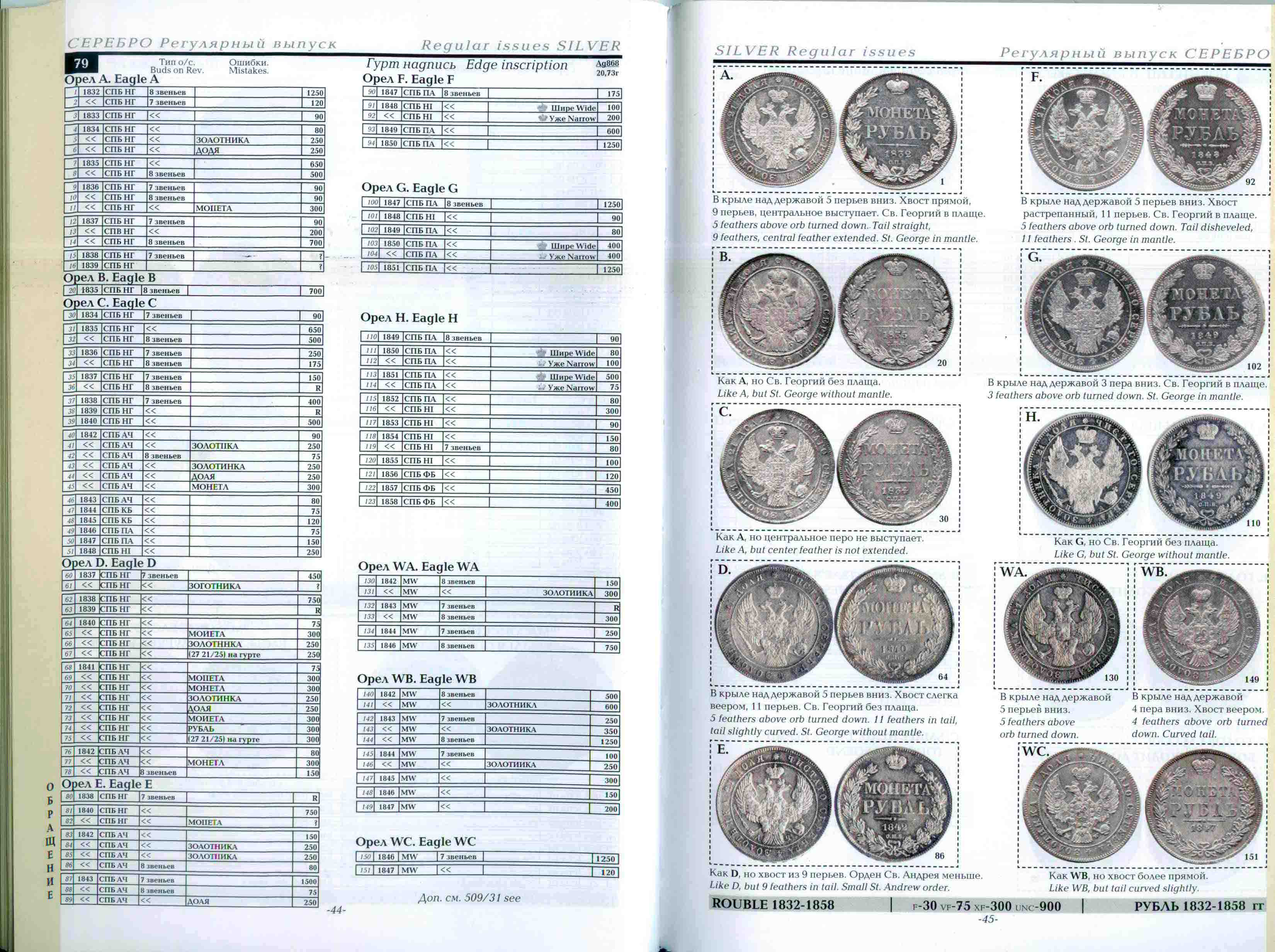 Варшавские монеты (знак MW) чеканятся присланным в 1841 году инструментом и до 1849 года имеют орла только первого типа.