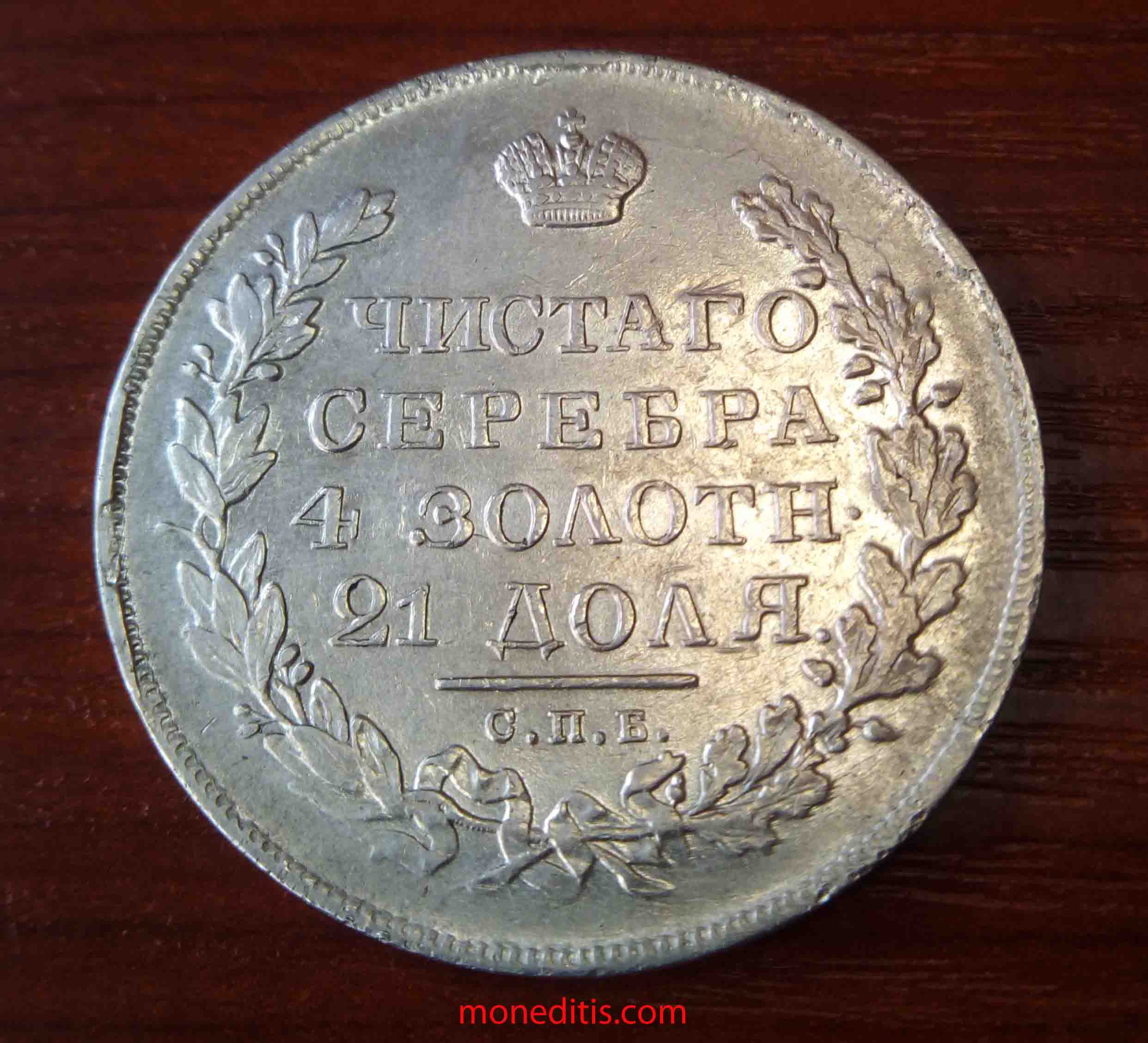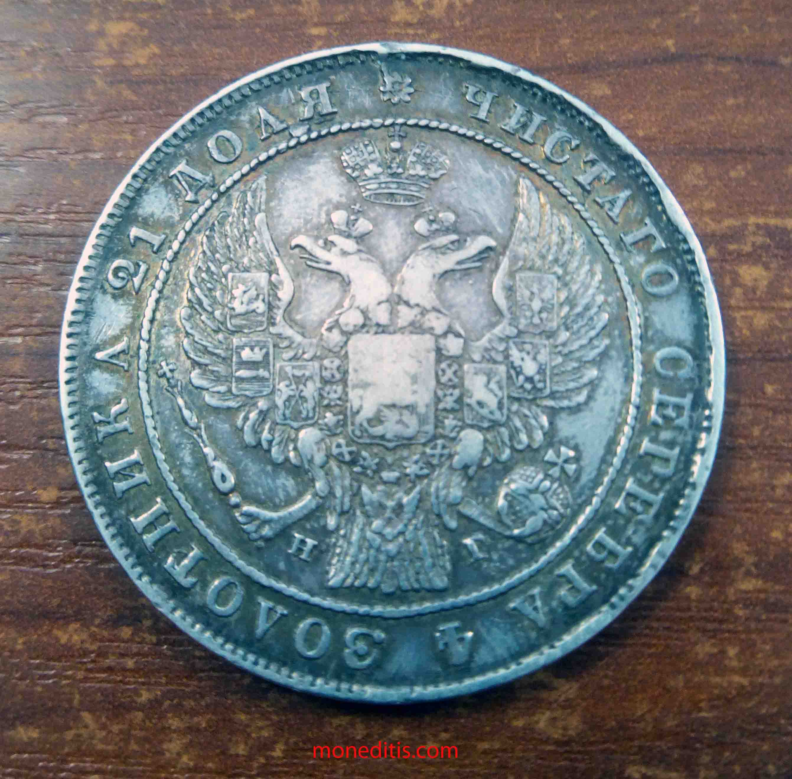Por decreto del 1 de julio de 1826, Nicolás I conserva el peso y la ley en las monedas de oro y plata, pero uniforma su apariencia. En las monedas de plata, y después en las de oro, (también las de platino pt https://moneditis.com/2015/04/29/rusas/ ) , se coloca un nuevo emblema -el águila» masónica » – con alas bajas, apareciendo en su pecho el emblema de Moscú y en las patas antorcha, vara de mando y cintas, coronándose las dos (2) cabezas con la corona imperial.