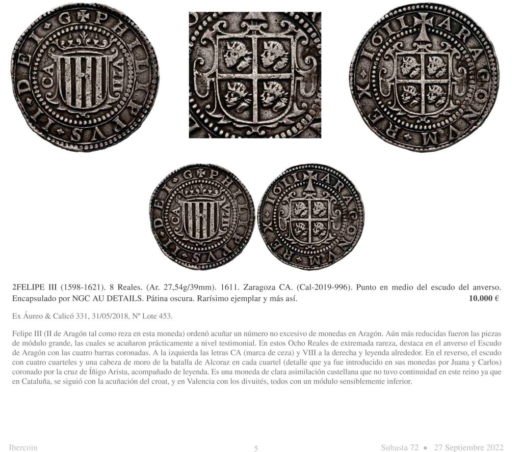 Páginas del catálogo de Aureo referentes a estos reales de a ocho