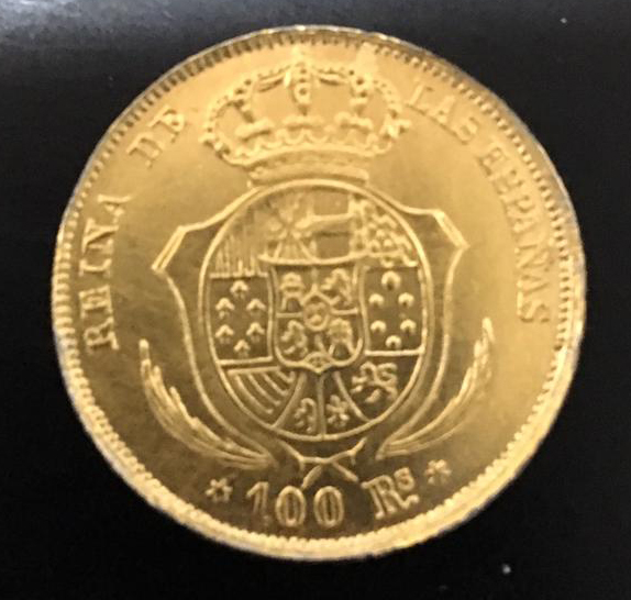 Tras subasta Aureo Reyes Católicos y Celebración Navideña Monetaria el año termina con unos 100 reales de Isabel II, año 1862, que debiera ser de oro…incluso las hay de platino…pero es de wolframio